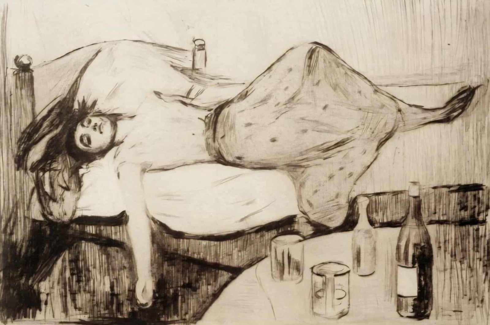 “اليوم التالي” لإدفارد مونك — تلك المرأة المنهارة، المعنَّفة، بعد سهرة حارّة — تجسّد ثنائية اللذة والندم. (صرخة) مونك الشهيرة لا تُسمَع هنا… بل تُلتهم في رغبة جسد يبحث عن “كباب” يعيد توازنه.